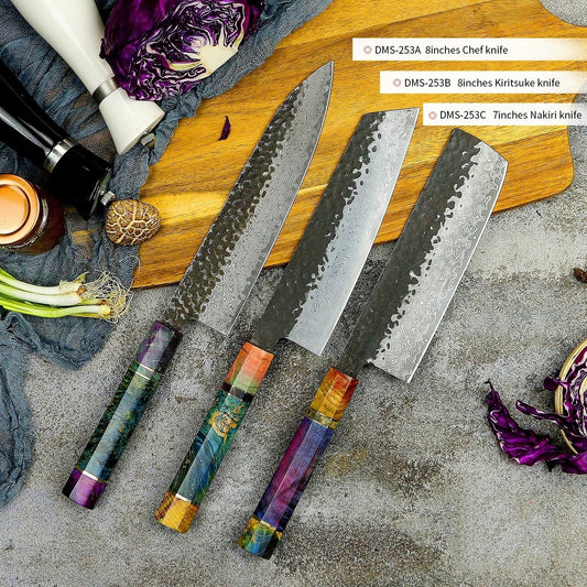 VG10 Damascus Tool Forging Knife Set - 8-Inch Chef, Kiritsuke, and 7-Inch Nakiri Knives