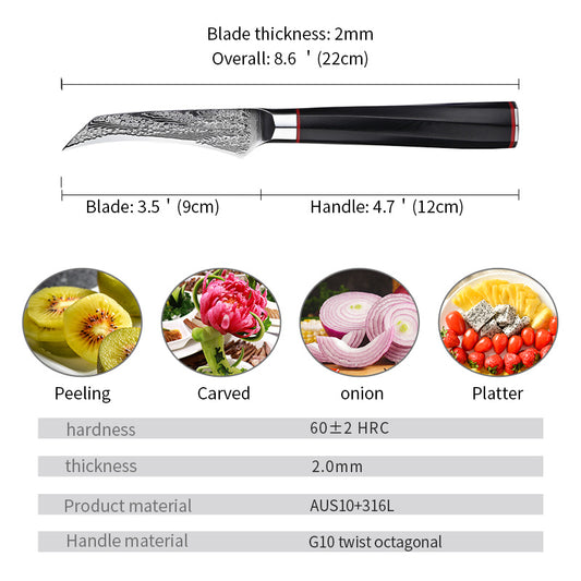 Japanese Damascus Steel Kitchen Fruit Knife - AUS10 Blade with G10 Octagonal Handle