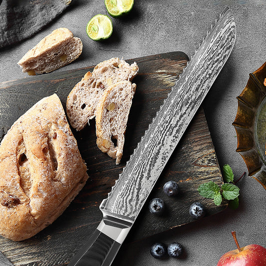 Damascus Bread Knife - Premium AUS10 Steel with G10 Octagonal Handle